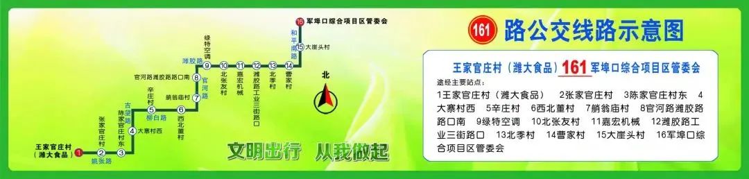为加快乡村振兴,进一步推动城乡公交一体化发展,经潍城区交通运输局、军埠口综合项目区、潍坊市公交集团共同努力,1月28日起,161路公交线正式开通,这条线路是潍城区新一条乡村旅游专线,串联着多个“美丽、整洁、干净”的乡村及景点,覆盖了姚张路、古望路、柳白路、官河路等道路公交盲区,解决了多年来潍城西南部片区公交线路少的问题。